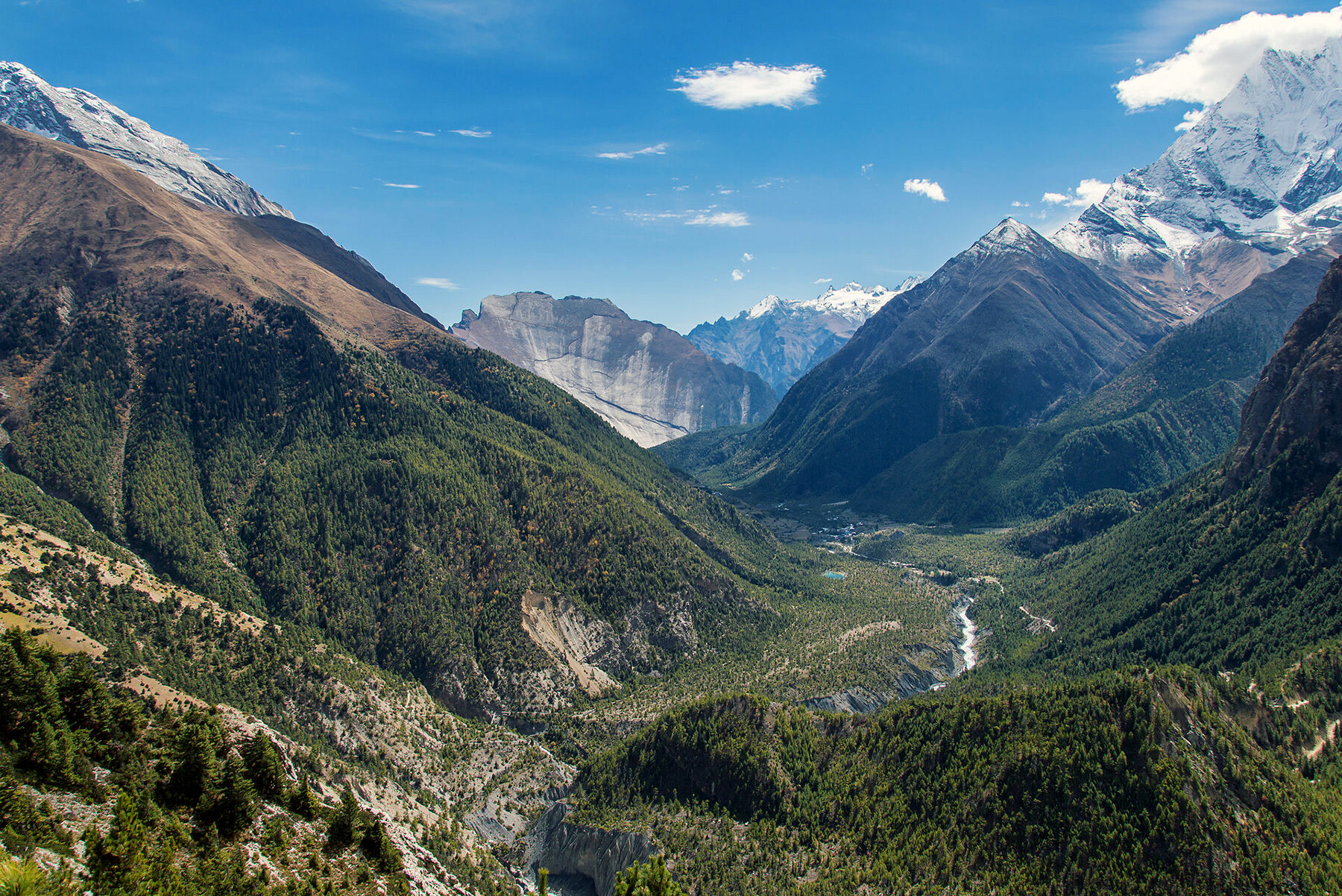 Переход из Верхнего Писанга в Мананг (3 540 м.) — один из самых впечатляющих этапов треккинга в регионе Аннапурны. Верхняя тропа, проходящая через живописные склоны, предлагает непрерывные панорамы гигантов массива: слева открываются виды на Аннапурну II (7937 м.), Аннапурну III (7555 м), Гангапурну (7455 м) и заснеженный пик Тиличо (7134 м). Этот маршрут, сочетающий каменистые участки, сосновые леса и традиционные деревни, считается одним из самых атмосферных — здесь ощущается величие Гималаев, а каждый поворот тропы дарит новые ракурсы горных исполинов.