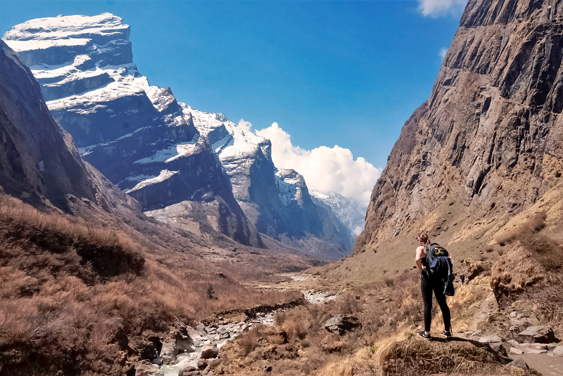 Массив горы Аннапурна с максимальной высотой 8 091 м. - горный массив в Гималаях, включающий шесть вершин высотой от 6 993 до 8 091 м, где Аннапурна I (8 091 м.) является десятым по высоте восьмитысячником мира и первым, на который совершено успешное восхождение (1950 г., экспедиция М. Эрцога). Массив образует 55-километровую дугу с ледниковыми системами, глубокими ущельями (включая самое глубокое на планете — Калигандаки). Аннапурна I сохраняет статус одного из самых опасных восьмитысячников, поэтому на нее мы не пойдем, а обойдем ее вокруг, посетив самые красивые места в Гималаях в рамках нашего треккинга. Территория входит в состав заповедника «Аннапурна».