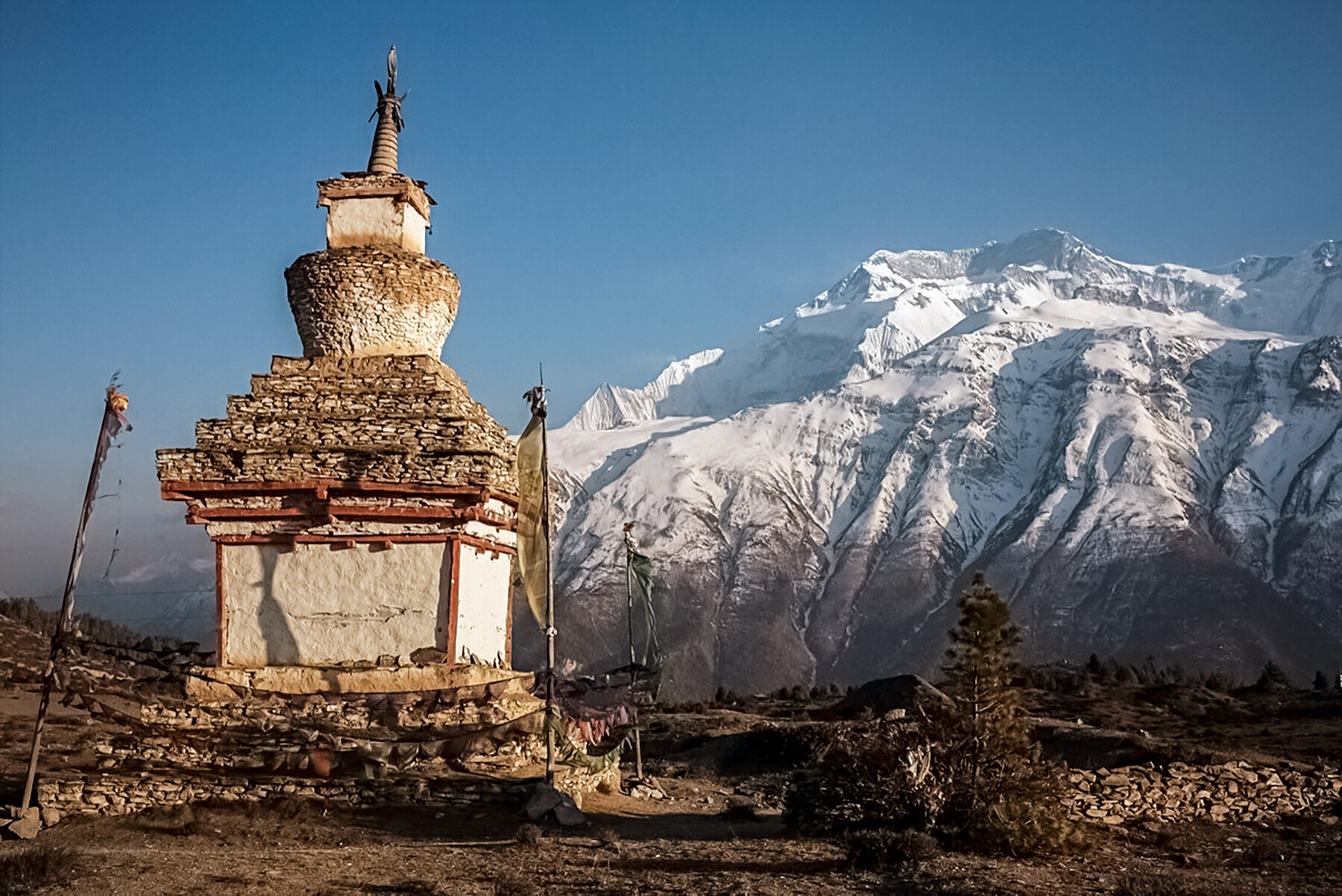 С самого поселка Верхний Писанг мы увидим массив величественной Аннапурны, вершины — Аннапурна 2 (7 937 м.), Аннапурна 3 (7 555 м.), Гангапурна (7 454 м.), и пик Тиличо (7 135 м.).