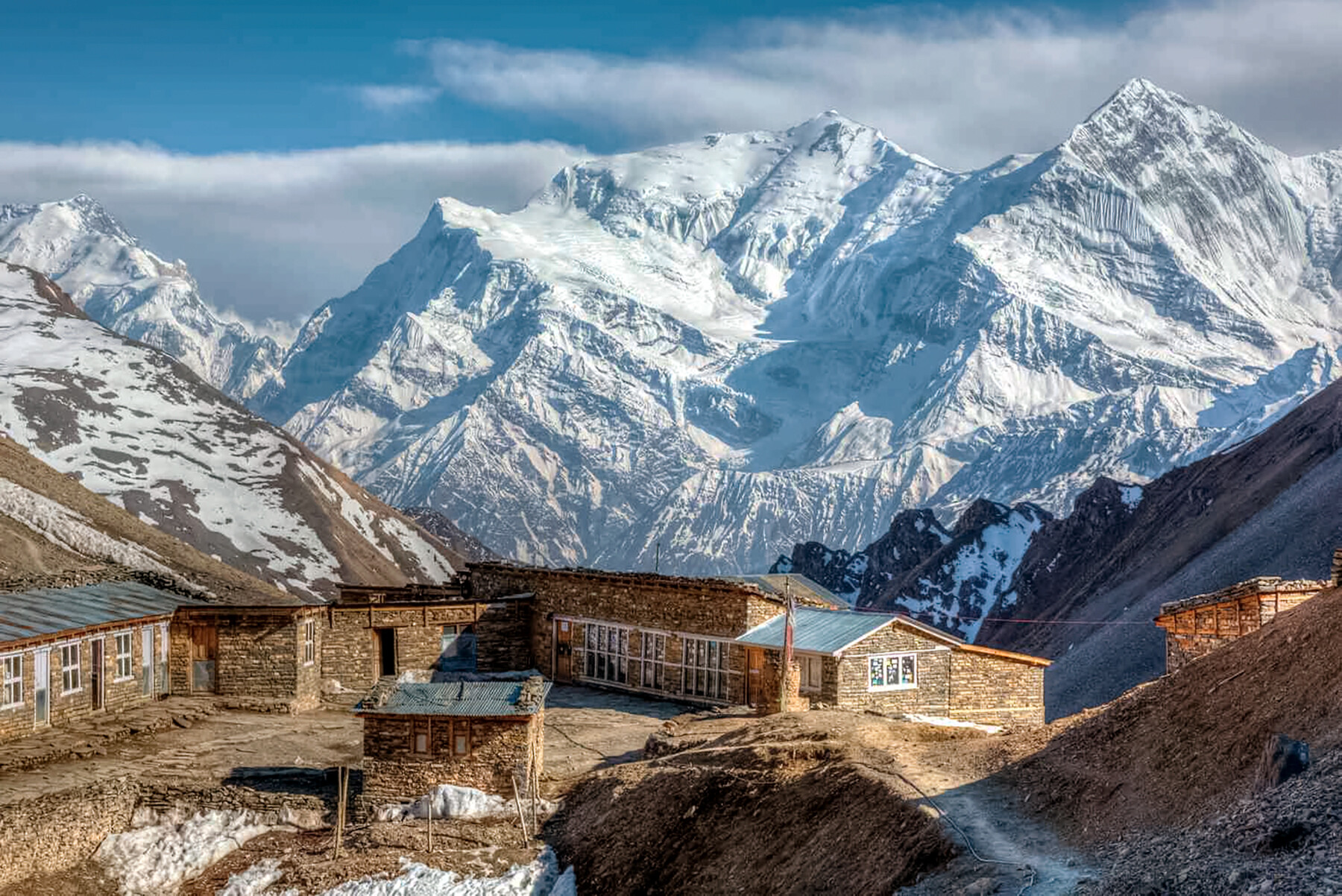 Ночёвка здесь сокращает утренний штурм перевала Торонг Ла на 2.5 часов, но при риске снегопада или симптомах горняшки группа остаётся чуть ниже в деревушке Торонг Педи (4 450 м).